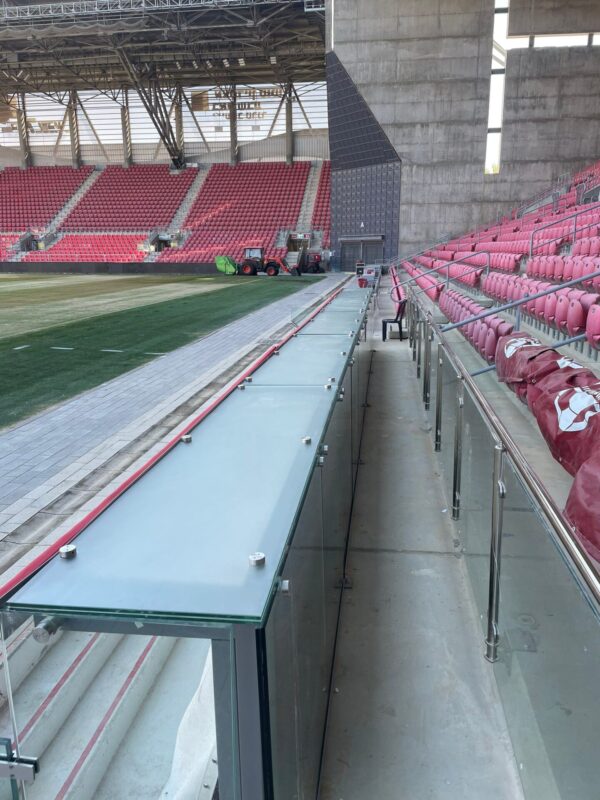 בשלב הראשון, צוות חרות זכוכית עבד בשיתוף פעולה עם מהנדסים ויועצי בטיחות כדי לוודא שכל המרכיבים נבנים בהתאם לתקנון החדש של ההתאחדות לכדורגל.